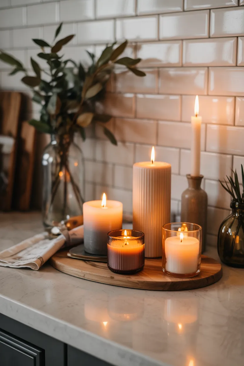 Nothing beats the warm glow of a candle in the kitchen! Pick unscented ones in simple holders that match your hardware.